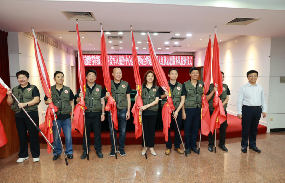 日前,中山市退役軍人事務局舉行創(chuàng)建省星級示范服務中心現(xiàn)場總結會暨退役軍人紅旗志愿服務隊授旗儀式。南區(qū)街道黨工委委員王小龍、公共服務辦公室、退役軍人服務中心負責人等參加了此次會議。