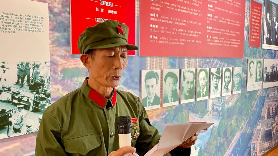 紅色宣講員、沙溪鎮(zhèn)退役軍人紅旗志愿服務(wù)隊(duì)隊(duì)員、退役老兵阮漢英介紹沙溪鎮(zhèn)烈士生平事跡。