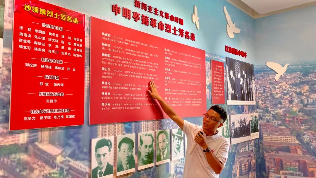 紅色宣講員、沙溪鎮(zhèn)退役軍人紅旗志愿服務(wù)隊(duì)隊(duì)員、申明亭小組工作人員楊健永介紹申明亭烈士生平事跡。
