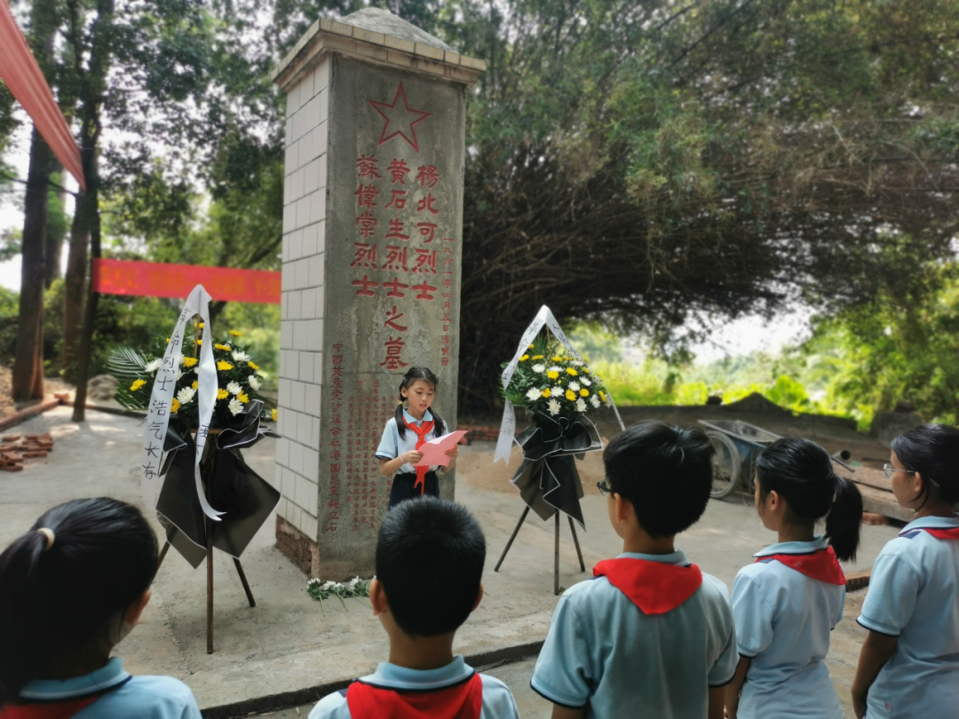 少先隊(duì)員代表、中心小學(xué)學(xué)生黃可馨為烈士們獻(xiàn)詞:作為未來(lái)祖國(guó)接班人,身上流淌著的是先輩們的紅色基因,傳承的是紅色的革命的理想,應(yīng)該養(yǎng)成文明進(jìn)取的習(xí)慣,學(xué)習(xí)好各門文化知識(shí),掌握好各種科學(xué)技術(shù),完善自己的思想,凈化自己的心靈。維護(hù)民族尊嚴(yán)和國(guó)家榮譽(yù),將國(guó)家的明天建設(shè)得更加美好!