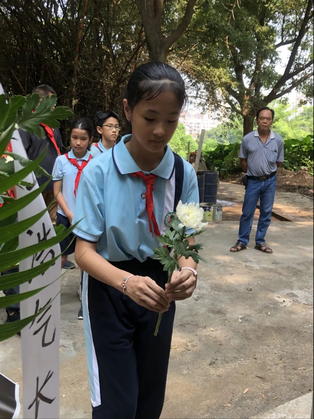 ▲在沙溪鎮(zhèn)黨委委員李海龍、副鎮(zhèn)長(zhǎng)候選人余添宏帶領(lǐng)下,按順序依次向楊麗容烈士雕塑獻(xiàn)花。