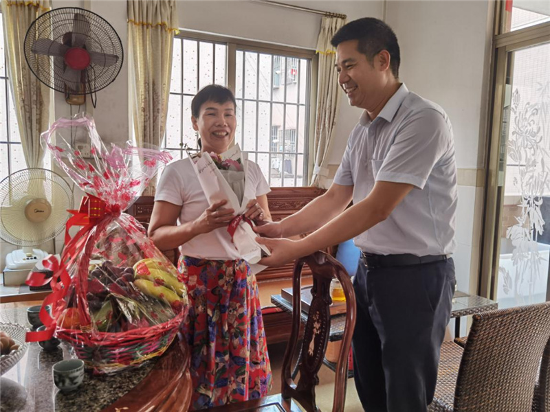 ▲南頭鎮(zhèn)退役軍人服務(wù)中心走訪慰問(wèn)邊防海防現(xiàn)役軍人母親。 每到一戶,南頭鎮(zhèn)退役軍人服務(wù)中心主任黃國(guó)全都為“兵媽媽”獻(xiàn)上鮮花和果籃,并了解邊防海防現(xiàn)役軍人在部隊(duì)的服役情況,以及家屬身體狀況、生活、工作等情況,對(duì)她們默默支持孩子為國(guó)防建設(shè)作貢獻(xiàn)致以崇高的敬意。 “謝謝你們今天專(zhuān)程來(lái)看望我,我感到黨和國(guó)家對(duì)軍人軍屬越來(lái)越重視,作為邊防軍人家屬尤其感到驕傲和自豪!我們將一如既往地支持他在邊防站好崗、放好哨,為國(guó)防出力!”邊防官兵何財(cái)華媽媽說(shuō)道。 |