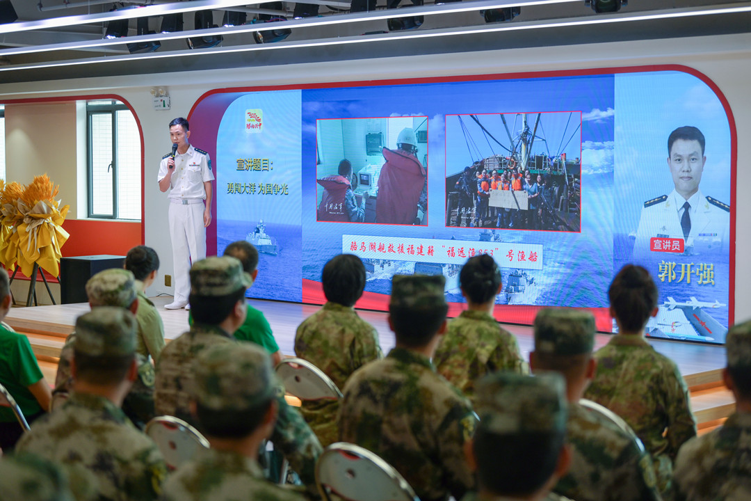 91878部隊郭開強干事為大家?guī)碇黝}宣講《勇闖大洋 為國爭光》。