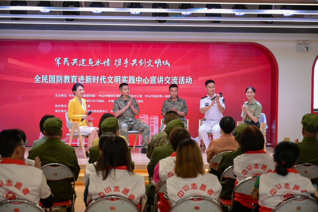 5月18日下午,全民國防教育進(jìn)新時代文明實踐中心宣講交流活動在中山市民眾街道新時代文明實踐中心舉行,退役軍人代表、基層群眾、村干部以及受邀出席的中國人民解放軍91878部隊、69316部隊官兵代表等200余人參加活動。