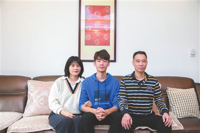 吳江浩(中)和父母。本報(bào)記者 張倩 攝