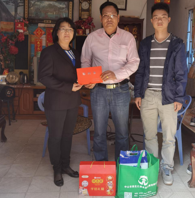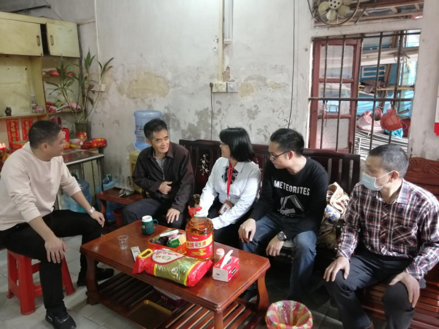 梁澤祥(右2)是參戰(zhàn)退役軍人,慰問組轉(zhuǎn)達(dá)了市退役軍人事務(wù)局、市工商聯(lián)和石岐青協(xié)對他的問候。