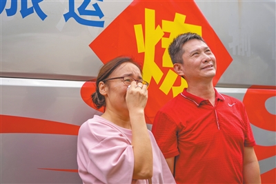 ▲送兵車緩緩啟動(dòng),家人們依依惜別。