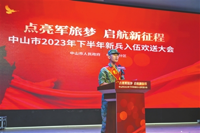 “希望你們不管在何處服役,是哪個(gè)兵種,都銘記父老鄉(xiāng)親的殷殷囑托,在部隊(duì)大力弘揚(yáng)中山‘敢想敢闖、敢為人先’的精神,展示出‘中山兵’的良好精神風(fēng)貌,沖鋒在前、勇?lián)笕巍^斗奉獻(xiàn),努力為中山增光添彩。祝新戰(zhàn)友們一路順風(fēng),刻苦訓(xùn)練,能打勝仗,捷報(bào)頻傳!”在出席中山2023年下半年新兵歡送儀式時(shí),中山市征兵工作領(lǐng)導(dǎo)小組副組長(zhǎng)、中山軍分區(qū)大校司令員李云濤鄭重地說(shuō)。