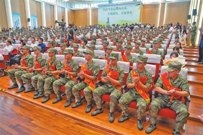 來(lái)自三鄉(xiāng)鎮(zhèn)的新兵代表馮林研究生畢業(yè)于青島農(nóng)業(yè)大學(xué),他鄭重承諾:“到部隊(duì)后我們一定牢記使命,安心服役、刻苦訓(xùn)練、嚴(yán)守紀(jì)律、積極進(jìn)取,為祖國(guó)和平安寧扛好槍、站好崗,不辜負(fù)國(guó)家和家鄉(xiāng)人民的期望!”