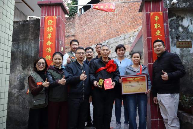 ▲慰問組為濠涌村方漢明家屬送上“四有”優(yōu)秀士兵喜報