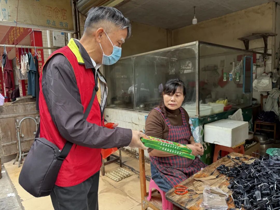 除了走進村(居)民家中普及防蚊知識,各村(社區(qū))“兩熱”防控行動組還將宣傳觸角延伸至轄區(qū)商鋪。行動人員手把手幫商戶檢查花瓶積水、廢舊水桶等蚊蟲孳生隱患點,反復(fù)提醒商戶做好“翻盆倒罐”,嚴(yán)格落實“門前三包”?!盎卓涎艧?、登革熱可不是普通發(fā)燒,關(guān)節(jié)疼起來特別難受,傳播源就是伊蚊,咱們把衛(wèi)生搞好了,蚊蟲少了,‘兩熱’自然就不來了?!币痪渚渫ㄋ滓锥闹v解,讓防控知識真正走進商戶、融入居民生活,實現(xiàn)入腦入心。