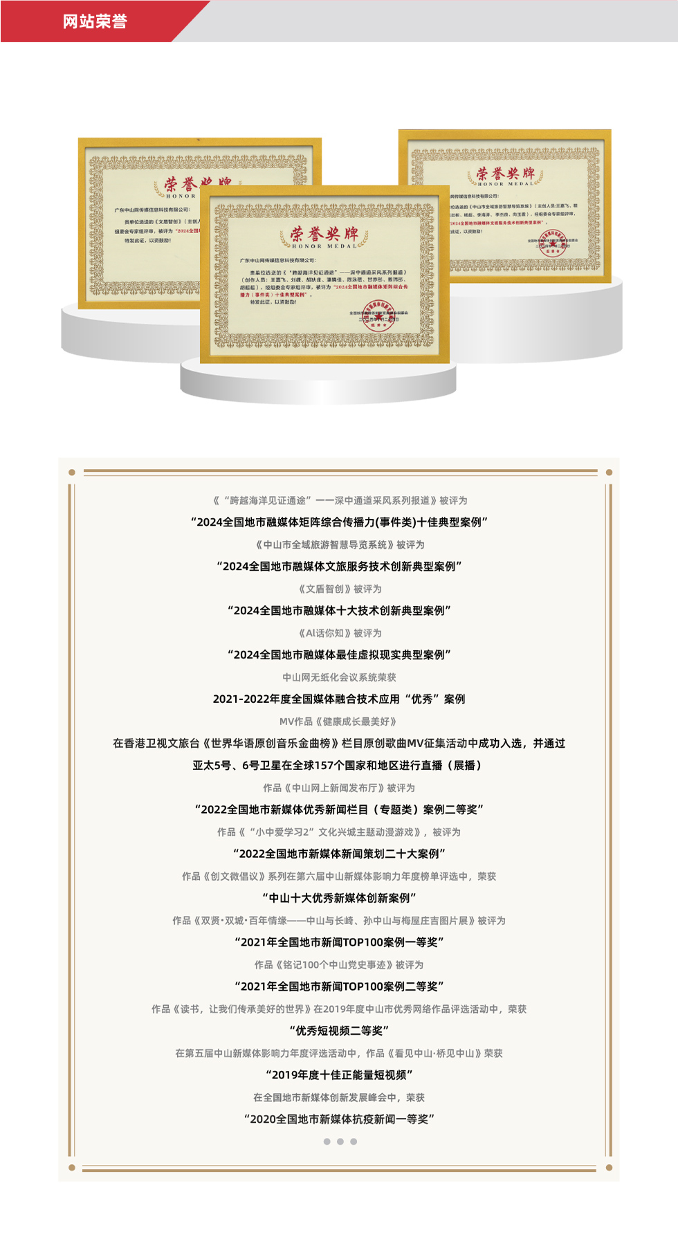 為積極響應國家文化體制改革,2012年中山網信科應運而生,是中山日報社全資一級企業(yè)。經過十多年的發(fā)展,中山網信科已成長為國家高新技術企業(yè)、廣東省專精特新中小企業(yè),擁有互聯(lián)網新聞信息服務許可證、信息網絡傳播視聽節(jié)目許可證、增值電信業(yè)務經營許可證等國家、省、市級行業(yè)許可,是本地證照最為齊全的新聞機構之一。