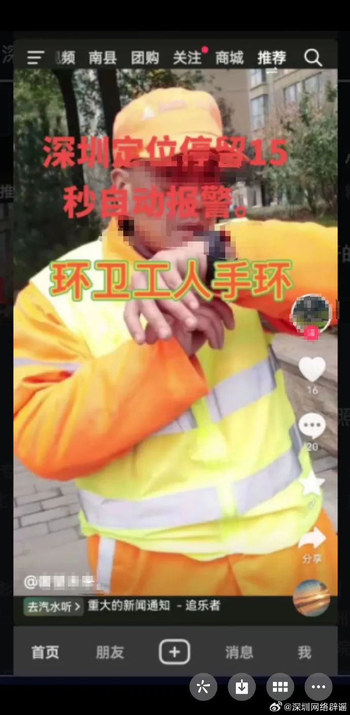 深圳環(huán)衛(wèi)工人定位手環(huán)停留15秒自動報警?官方回應