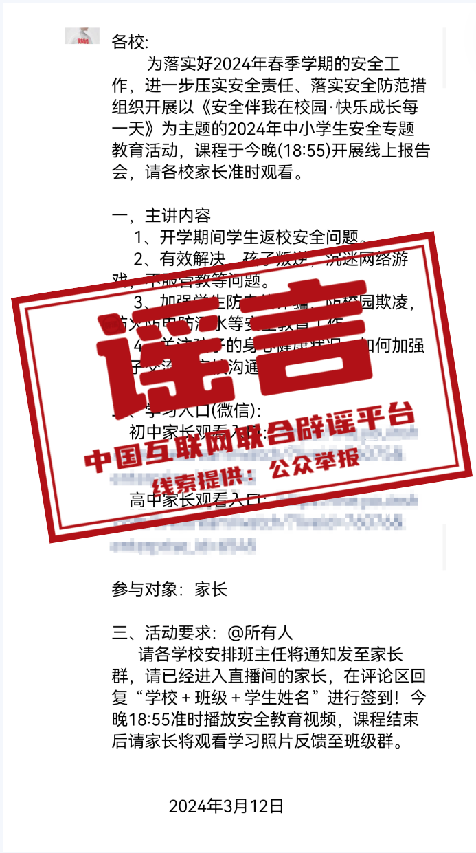 真相:近日,廣西北海40多所中小學接到自稱“當?shù)叵狸爡⒅\”的電話,要求校方組織全校學生在互聯(lián)網(wǎng)上觀看所謂的“中小學生消防安全專題直播”。經(jīng)當?shù)叵啦块T和教育部門聯(lián)合調(diào)查,該網(wǎng)絡(luò)直播活動為虛假活動。直播內(nèi)容與消防安全毫無關(guān)系,主播通過話術(shù)向家長販賣“升學、考學焦慮”,從而達到推銷網(wǎng)絡(luò)課程的目的。當?shù)毓膊块T表示,該行為已涉嫌冒充國家機關(guān)工作人員招搖撞騙,將嚴肅追究涉案人員刑事責任。(來源:“中國消防”微信公眾號)