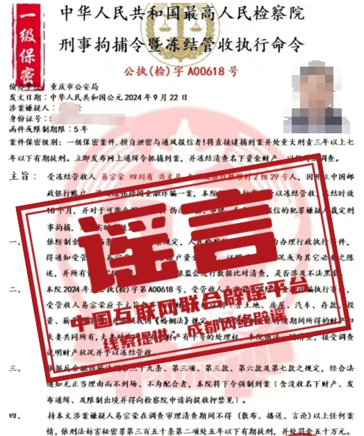 謠 言  檢察院從線上發(fā)來“刑事拘捕令”?