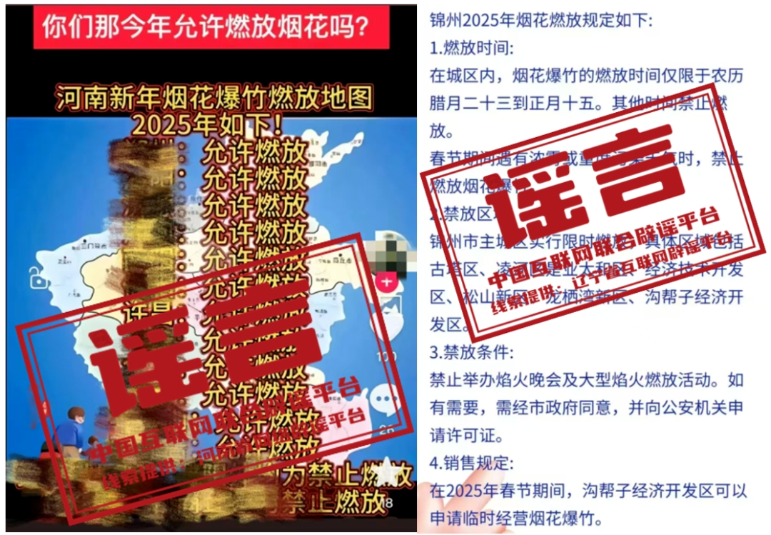 謠 言 2025年河南許昌、遼寧錦州允許燃放煙花爆竹?
