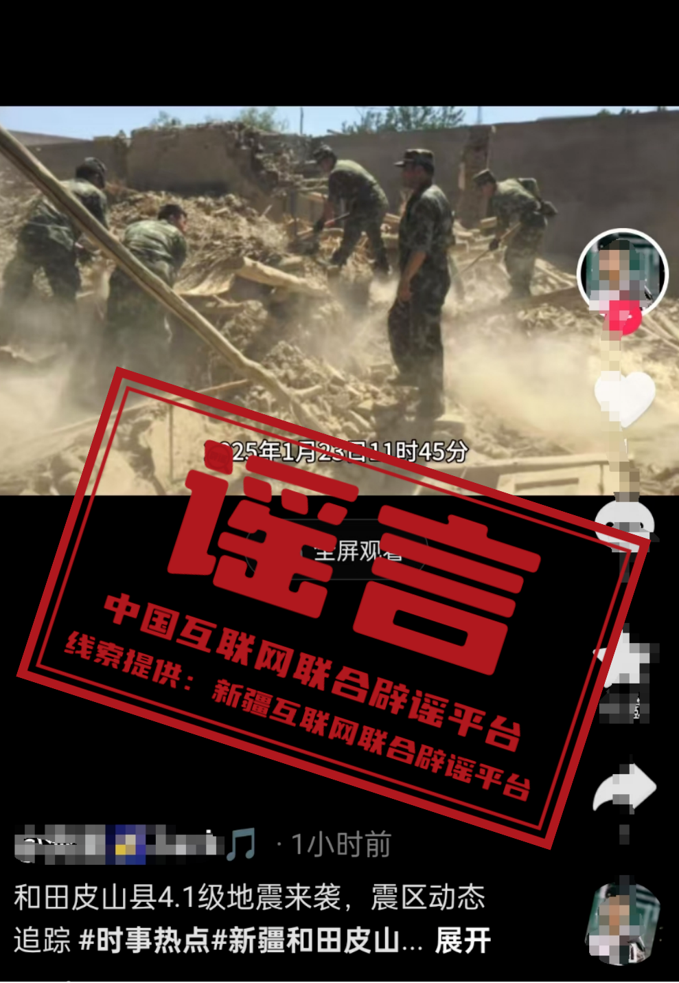 真相:中國(guó)地震臺(tái)網(wǎng)正式測(cè)定,2025年01月23日11時(shí)45分在新疆皮山縣(緯度36.94°,經(jīng)度78.87°)發(fā)生4.1級(jí)地震,震源深度15公里,震中附近地形類型為山地,5公里范圍內(nèi)平均海拔高度為2484米,距離皮山縣92公里。個(gè)別網(wǎng)民關(guān)聯(lián)此次地震,發(fā)布“房屋倒塌、道路坍塌及應(yīng)急救援”等謠言圖片和短視頻,博取流量誤導(dǎo)網(wǎng)民。經(jīng)皮山縣應(yīng)急管理局核實(shí),此次地震未造成人員傷亡及財(cái)產(chǎn)損失。對(duì)編造散布地震謠言擾亂公共秩序、造成惡劣社會(huì)影響的行為,公安機(jī)關(guān)將依法依規(guī)嚴(yán)肅查處。請(qǐng)廣大網(wǎng)民擦亮眼睛,勿輕信傳播非正規(guī)來(lái)源、未經(jīng)證實(shí)的地震信息。(來(lái)源:新疆網(wǎng)絡(luò)辟謠)