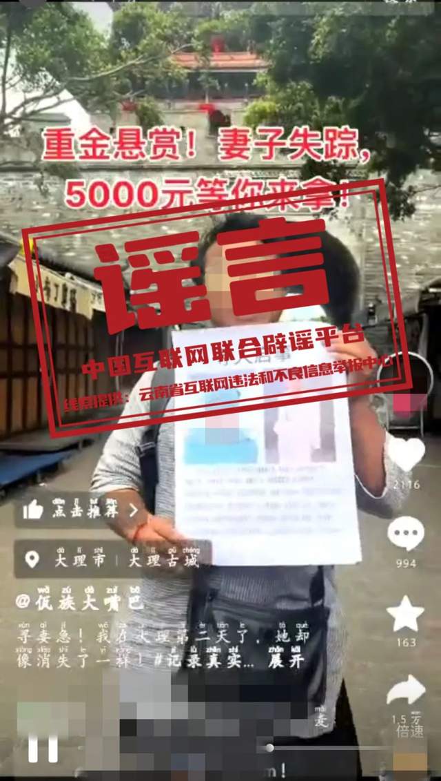 辟 謠 編造“重金懸賞尋妻”虛假信息博取眼球,被依法查處